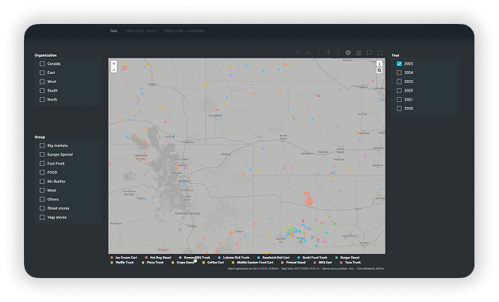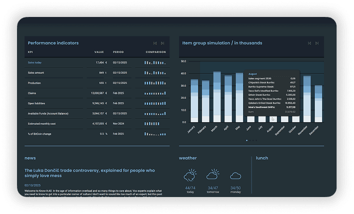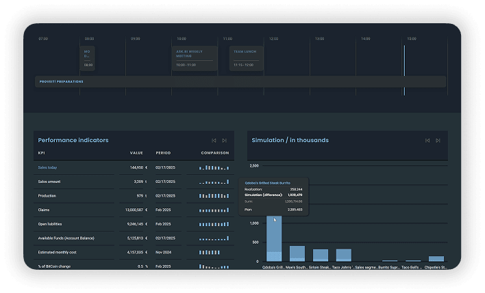 ASK.BI provides interactive dashboards that display key performance indicators (KPIs) like sales, production output, or machine status in real time. This allows users to monitor operations as they happen, identifying potential problems or opportunities immediately.