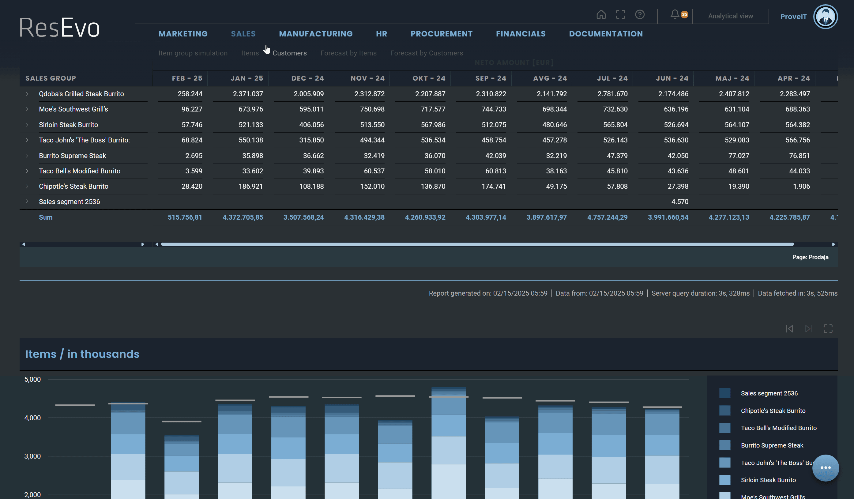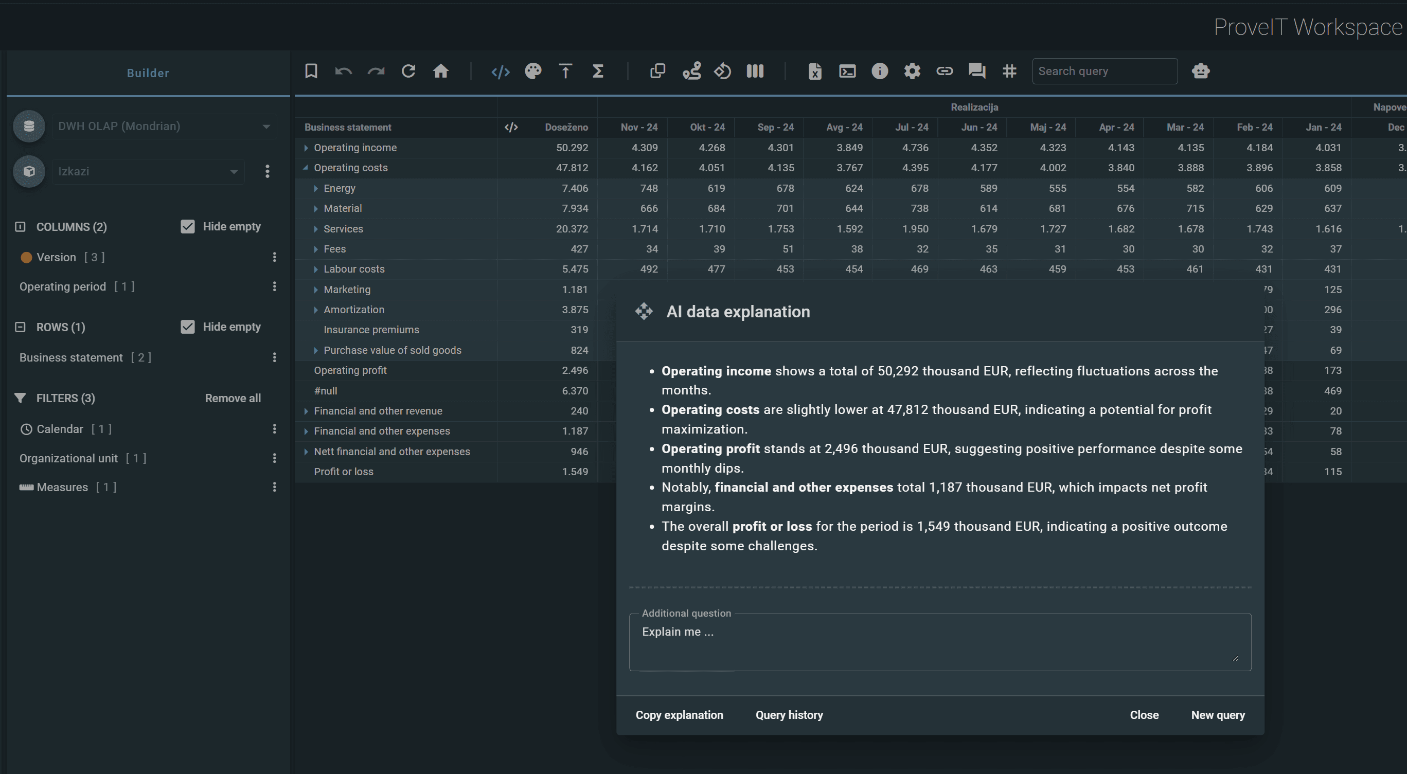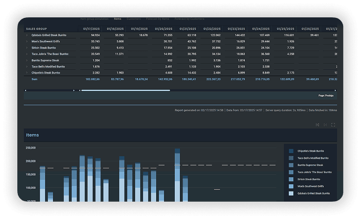 ASK.BI enables analysis at multiple levels, drilling down from overall summaries to specific products, customers, or machines. Paradajz utilizes this feature to track sales by product, allowing them to identify top performers, underperforming items, and inform decisions about product offerings and marketing strategies.