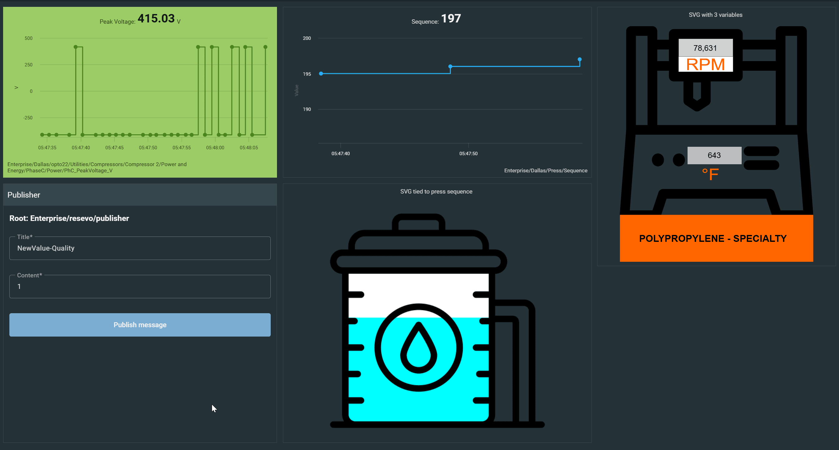 This module uses SVG, GeoJSON, OLAP, and Time Series databases to create real-time, drag-and-drop dashboards for UNS. It simplifies complex IT/OT data relationships, enhancing efficiency, predictive maintenance, and decision-making, all tailored to UNS-specific needs.